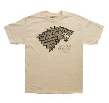 Присоединяйтесь к семье повелителей севера, надев эту замечательную футболку с изображением герба дома Старков и надписью "Winter Is Coming" ("Зима близко").