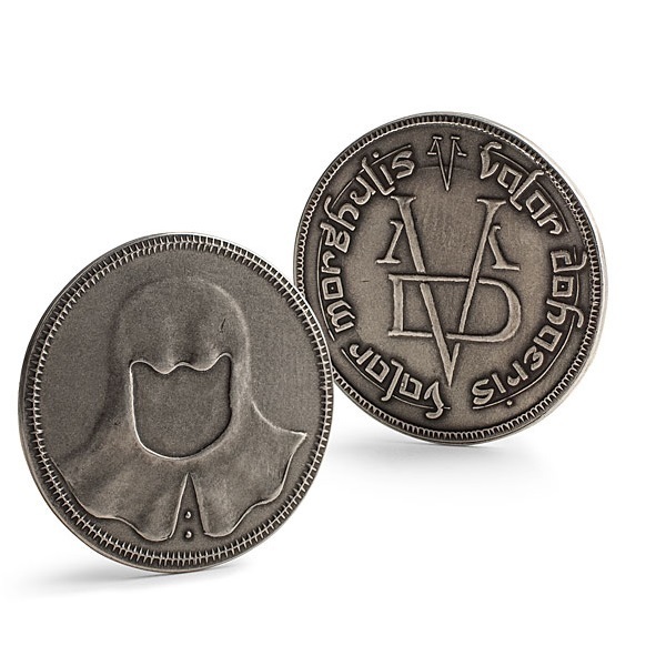 Точная официальная копия монеты Безликого, которую Якен Хгар подарил Арье в телесериале "Игра Престолов". На одной стороне изображена безликая фигура в капюшоне, на другой стороне надпись на валерийском - "Valar Morghulis, Valar Dohaeris" ("Все люди смертны, все люди должны служить"). Благодаря специальной обработке монета по мере использования с каждым годом будет становиться более блестящей и загадочной.