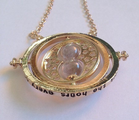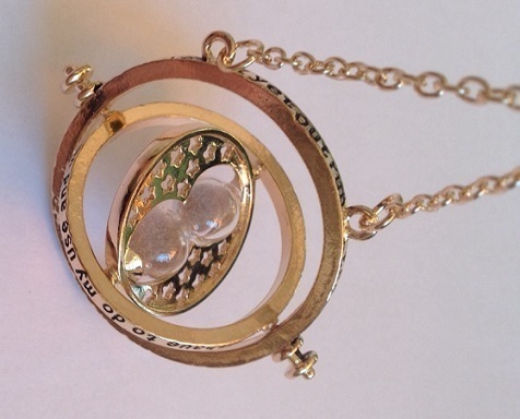 Бюджетная версия маховика времени Гермионы из фильма "Гарри Поттер и узник Азкабана". Внутренние кольца маховика вращаются, в цетре помещены песочные часы.